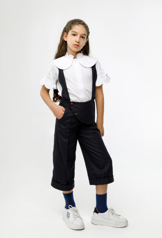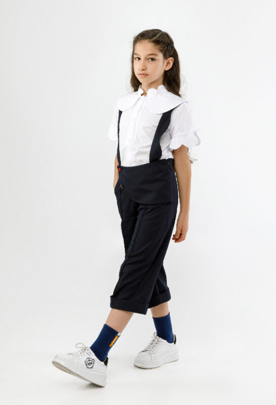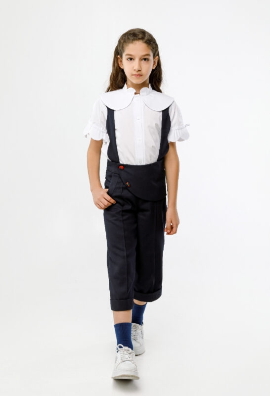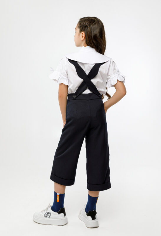 ბრიჯი კომბენეზონი, მუქი ლურჯი კლეჩატი დეტალებით