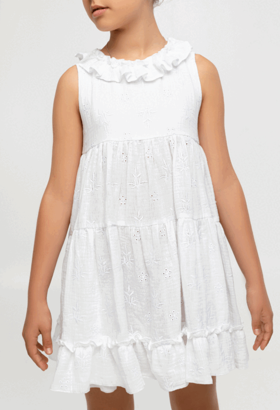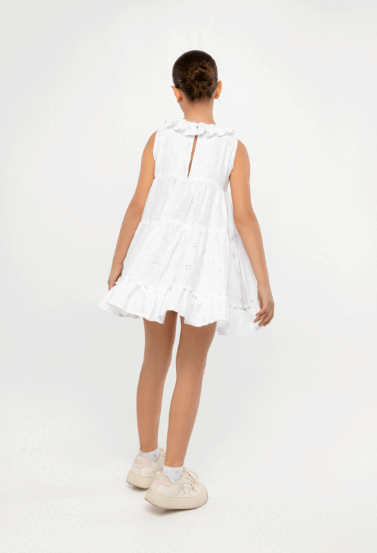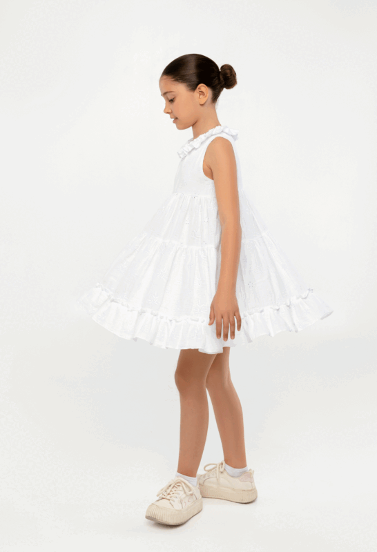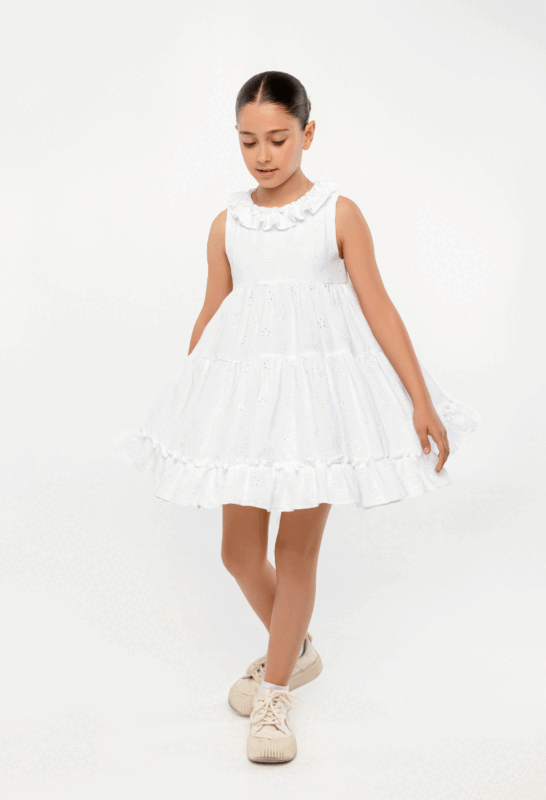 კაბა საყელოზე რუშით, თეთრი