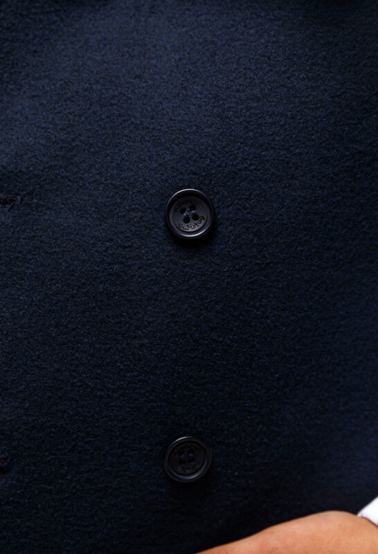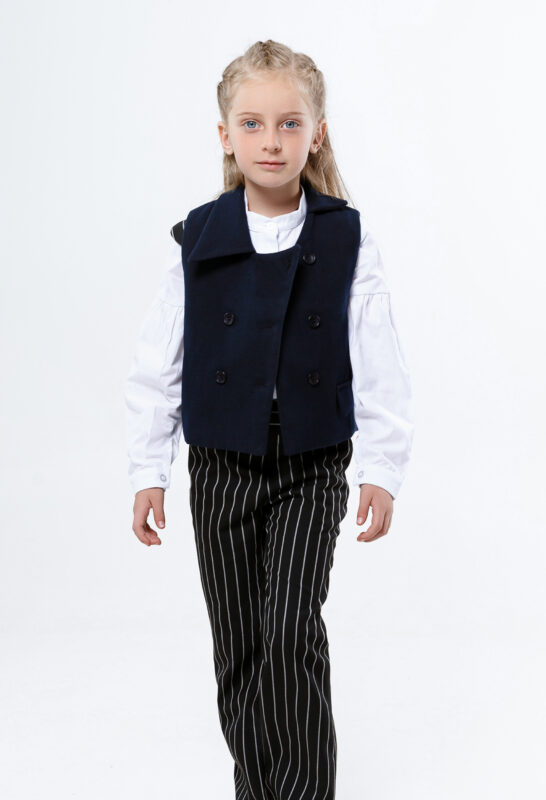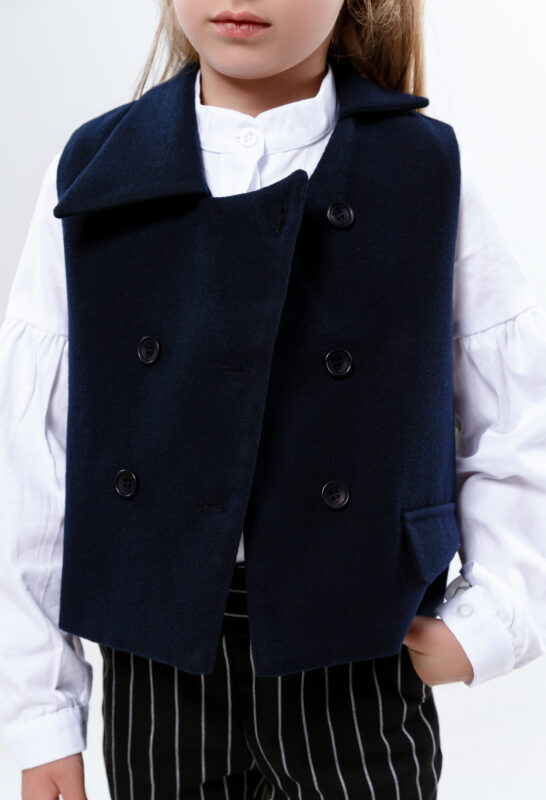 მუქი ლურჯი ჟილეტი ორ ღილზე, ბუკლე