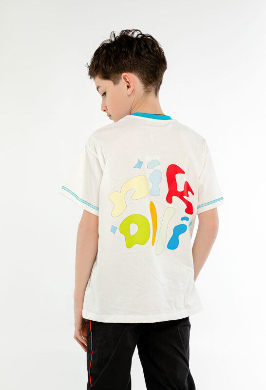 მაისური ზურგზე ფერადი წარწერით, თეთრი
