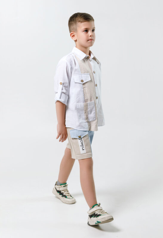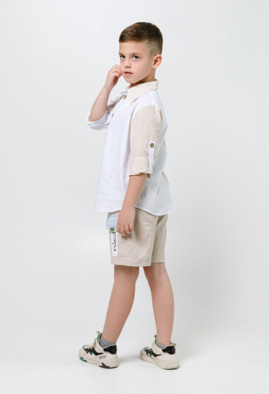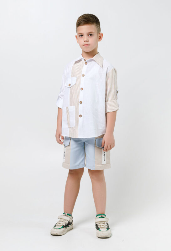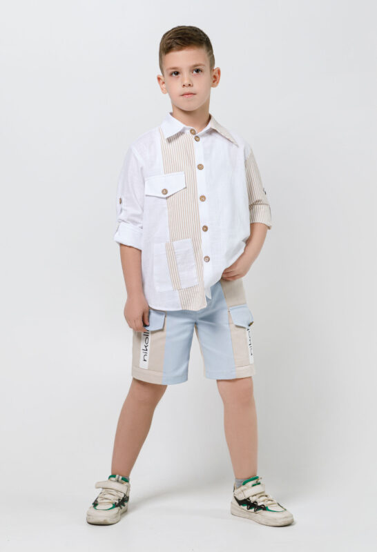 პერანგი ზოლებით და ბრენდირებული შორტი